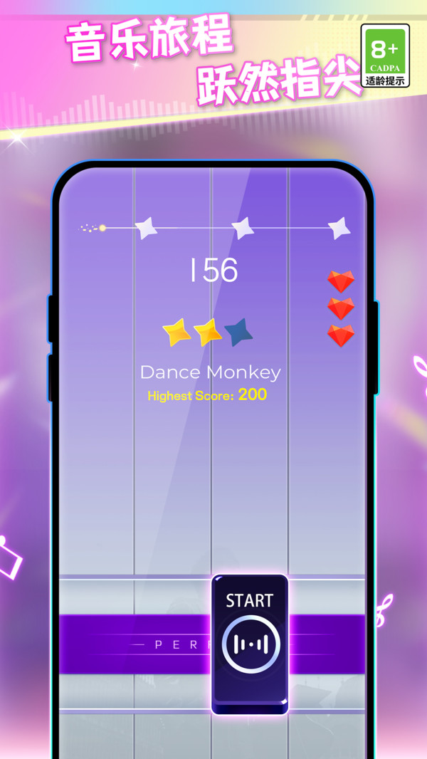 1、关卡设置多档难度,从入门到大师级逐步进阶,助力玩家在挑战中提升音乐技能与反应能力。